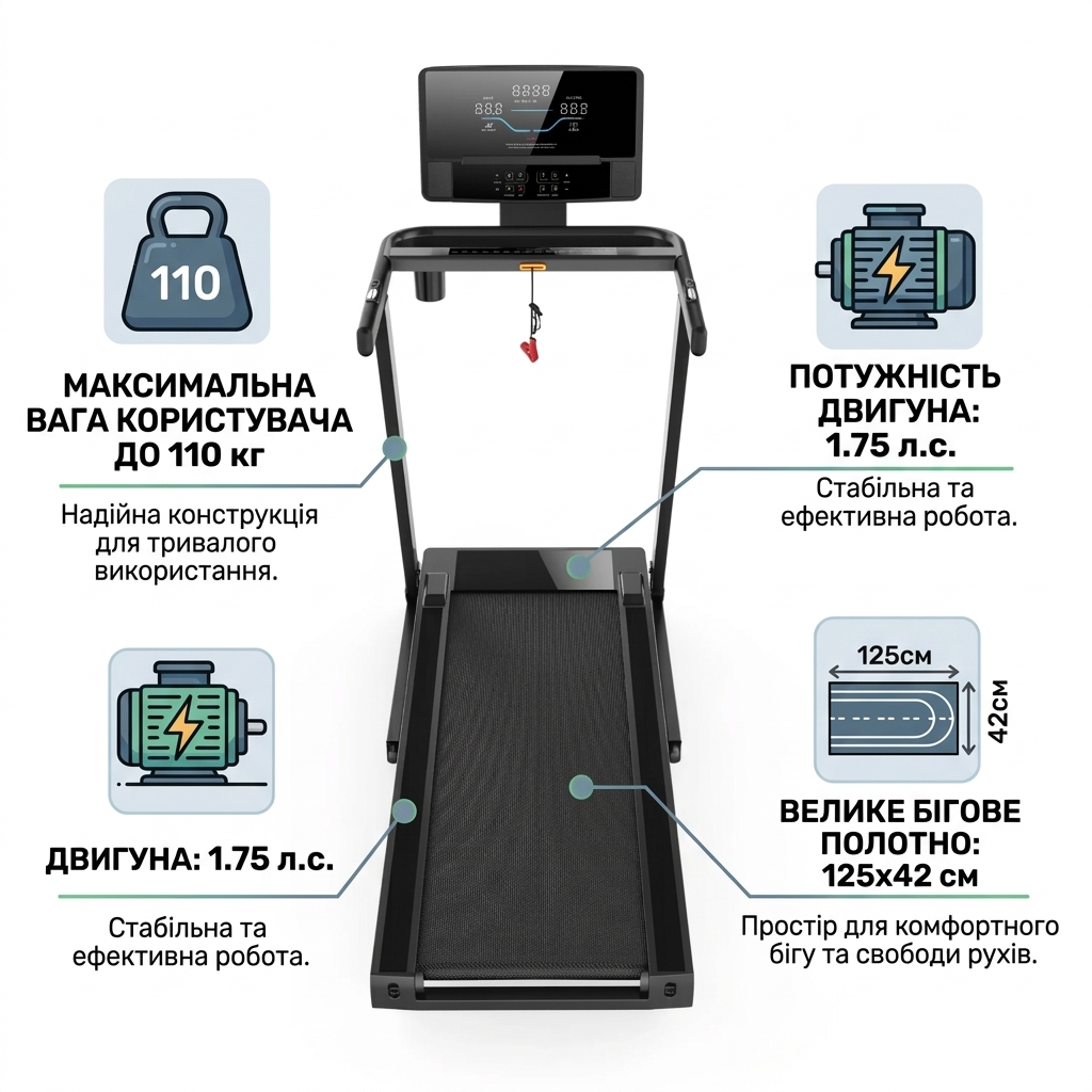 💡 З цією доріжкою ви зможете займатися спортом незалежно від погоди, економити час на дорогу в зал та тримати себе у формі щодня.