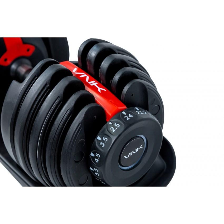 Одна пара гантелей VNK дозволяє налаштовувати вагу від 2,5 до 24 кг. Вам більше не потрібно займатися заповзяттям вагового обладнання — все у одному!