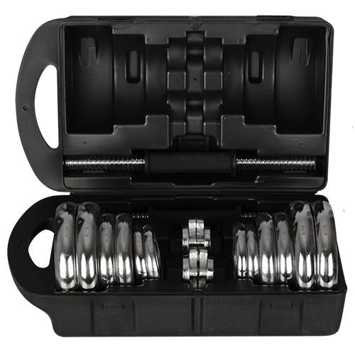 - Гантель наборная 20 кг (2 шт по 10 кг), хромированная, в чемодане