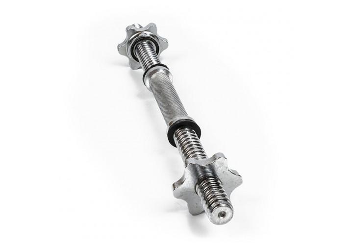 Гантельний гриф призначений для збору гантелі з різними видами дисків посадкового діаметра 25 мм і більше. На руків'ях у грифа нанесена спеціальна накатка, яка запобігає ковзанню грифа під час занять та створює безпеку ваших повсякденних вправ. Хромоване покриття грифа захищає від корозії та забезпечує його довговічність. Гвинтові замки (гайки Вейдера) забезпечують швидку та надійну фіксацію дисків.