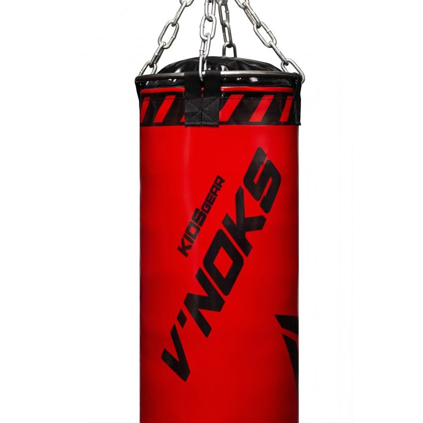 Ця боксерська груша ідеально підходить для дітей. Боксерська груша виконана вручну з високоміцного PVC матеріалу, спеціально розробленого інженерами компанії V`Noks (Вінокс), та армованої нитки за особливою технологією, для довгострокових та інтенсивних навантажень. Його висота 85 сантиметрів. Вага мішка 12-15 кг. Дизайн мішка передбачає наявність блискавки у верхньому відділі. Поворотний гак дозволяє надійно зафіксувати мішок на рамці боксу або настінному кронштейні. Гелевий прошарок сприяє більш комфортному удару навіть без рукавичок. Завдяки надміцним матеріалам і сталевому кільцю кріплення, виключається можливість опади наповнювача. Мішок довго зберігає свою форму і прослужить Вам багато років навіть при інтенсивній експлуатації. У комплекті з мішком Ви отримуєте ланцюга на 4 промені.