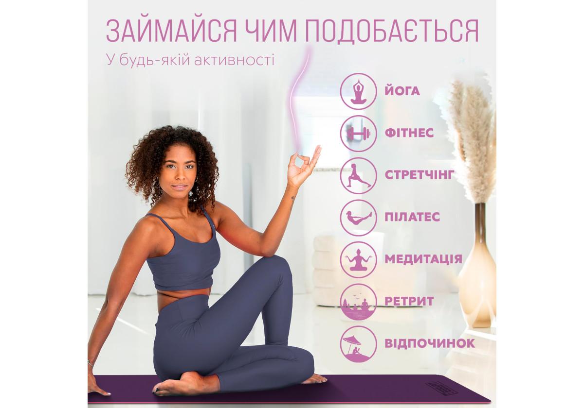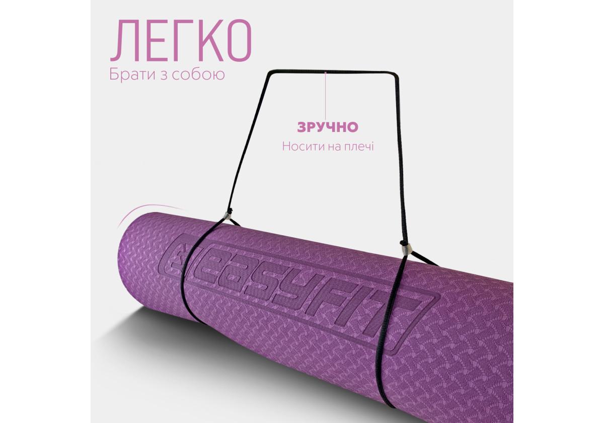 Килимок для фітнесу (йога-мат) з чохлом TPE - це зручний та практичний килимок, який ідеально підходить для всіх видів вправ, у тому числі: йога, пілатес, фітнес. Килимок виготовлений з термопластичного еластомеру (TPE) — синтетичний матеріал, який поєднав у собі кращі якості інших матеріалів, і став справді універсальним матеріалом: дуже легкий, має відмінне зчеплення, має помірну легкість, хорошу пружність та амортизацію, стійкий до зовнішніх впливів. Килимок складається з двох шарів, тому відрізняється підвищеною міцністю. Зовнішня сторона килимка є більш рельєфною поверхнею, ніж внутрішня, і має протиковзну дію.