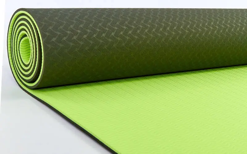 Особливість килимка для фітнесу в тому, що він складається з двох шарів, з'єднаних під впливом певної температури, тому відрізняється підвищеною міцністю. Зовнішня сторона йога килимка є більш рельєфною поверхнею, ніж внутрішня, і надає антиковзну дію. Завдяки цьому заняття абсолютно безпечні: ноги не ковзають, а значить Ви не ризикуєте впасти. Крім того, килимок не прилипає до тіла.