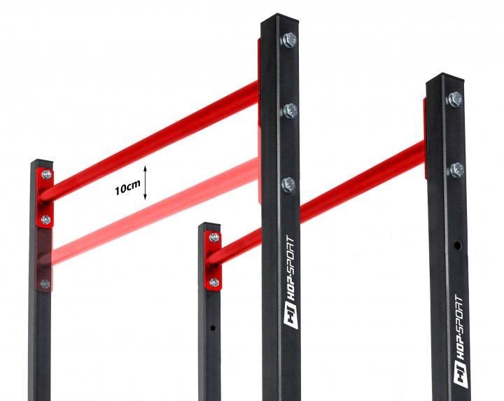 - Міцна конструкція Максимальне навантаження на бруси HS-1001K до 140 кг. Міцна сталева конструкція з профілів 40 х 40 мм була зроблена з урахуванням найдрібніших деталей, що робить вправи на брусах ефективними та безпечними. Крім того, порошкове покриття забезпечує тривалий захист поверхні.