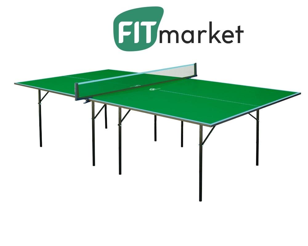 Тенісний стіл для закритих приміщень. Як матеріал для ігрової поверхні використовується спеціально оброблена деревостружкова плита (ДСП) товщиною 16 мм. На ДСП нанесене спеціальне покриття антивідблиску пластикове покриття синього кольору. Кожна половина стільниці має незалежну розбірну конструкцію і базується на чотирьох ніжках, що складаються, які мають жорсткі фіксатори в ігровому положенні. Конструкція виготовлена із металевого трубчастого профілю діаметром 25 мм з поліефірним покриттям.