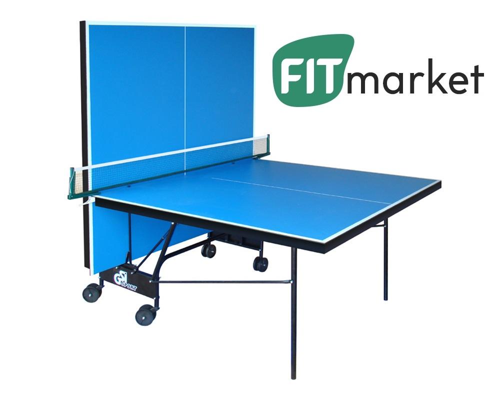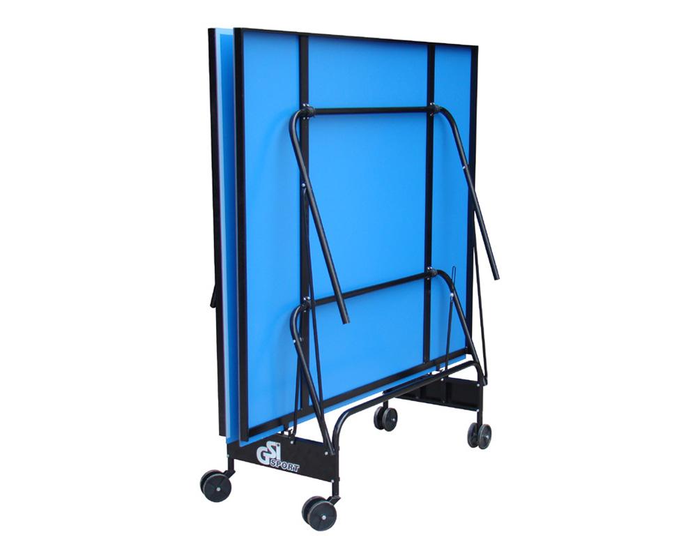Всепогодний тенісний стіл. Як матеріал для ігрової поверхні використовується алюмінієва композитна панель синього кольору товщиною 4 мм. Цей матеріал стійкий до дії спеки та холоду, а також вологи. Ігрова поверхня оснащена твердим металевим каркасом (профіль 30*20 мм). Тенісний стіл базується на компактному зручному візку, виготовленому з металевого трубчастого профілю діаметром 25 мм з поліефірним покриттям. Конструкція столу дозволяє тренуватися поодинці. Стіл легко переміщається на 4-х здвоєних колесах діаметром 107 мм, 2 маневрені колеса. Зовнішні опорні ноги мають регулювальний механізм висоти, що дозволяє коригувати нерівності підлоги в межах до +15 мм.
