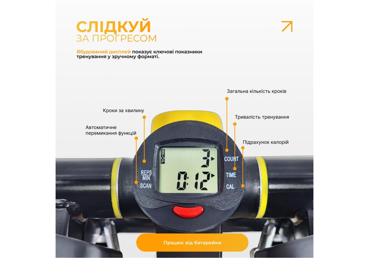 Степер створений для регулярних домашніх тренувань і витримує інтенсивну роботу завдяки міцній рамі, стабільній гідросистемі та продуманій ергономіці.