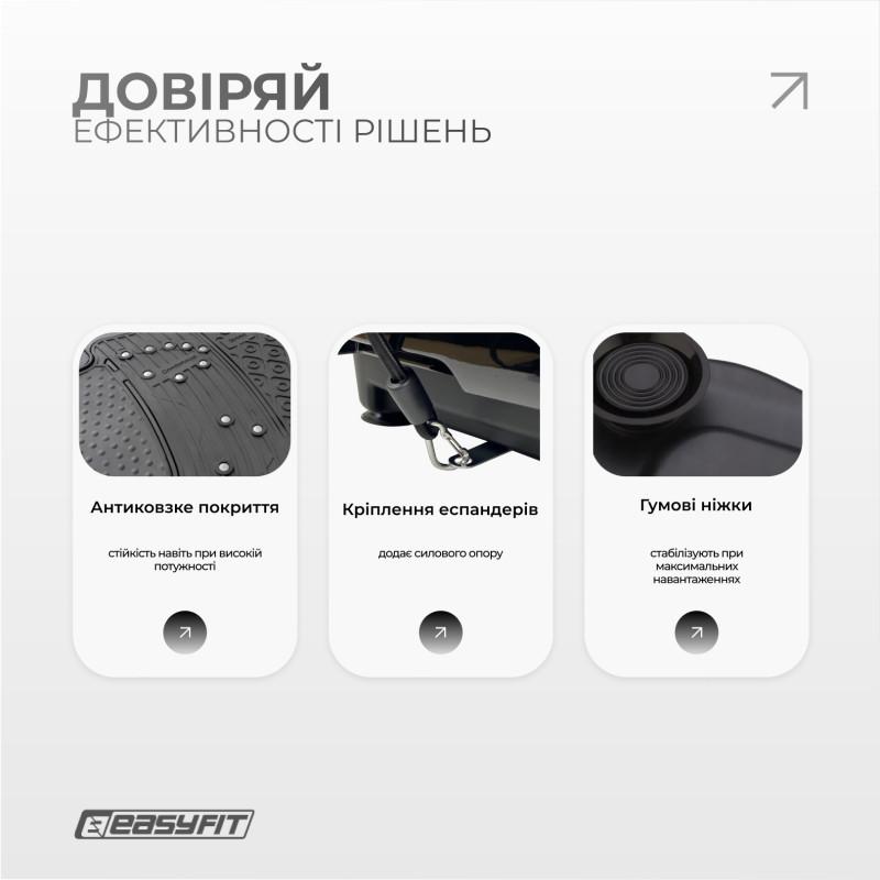 - Если вы искали виброплатформу, которую стоит купить — EasyFit VibroStep Max обеспечит вам полноценную замену походу в зал и поможет заботиться о теле в комфортных условиях дома.