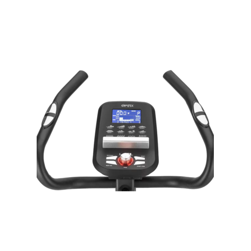 Велотренажер XB4000 Gymtek оснащений комп'ютером з великим і легко зчитуваним дисплеєм з блакитним підсвічуванням. Він пропонує багато функцій, у томучислі відображає основні параметри: час тренування, швидкість, пройдену дистанцію, витрачені калорії та пульс. Серцебиттявимірюється за допомогою тактильних давачів, розміщених на рукоятках. Функція SCAN дозволяє циклічно відображати параметри, ODO - це вся відстань, пройдена на велотренажері, а RPM - індикатор кількості обертів за хвилину. Комп'ютер також має з'єднання Bluetooth, що дозволяє використовувати навчальні програми, такі як iConsole. 18 тренувальних програм ефективно урізноманітнюють ваші тренування. Серед них ви знайдете програми для початківців і досвідчених користувачів. Recovery Test дає змогу перевірити фізичну форму та рівень підготовки людини, яка займається, а Body Fat вимірює рівень жирової маси користувача.