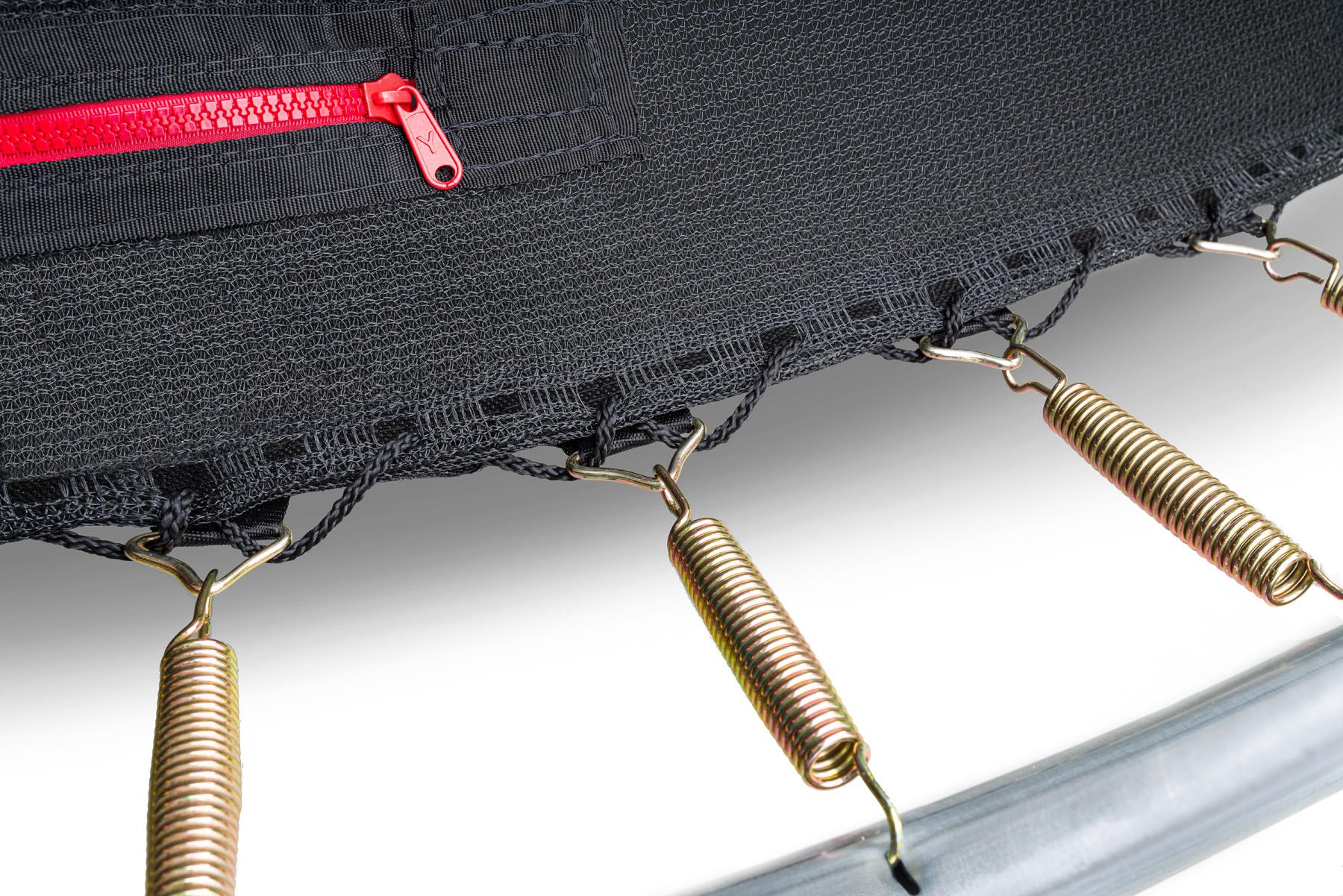 Пружини надійно закриті спеціальною накладкою з пружною піною, що захищає від випадкових ударів або подряпин. Усі моделі батутів Hop-Sport виробляються відповідно до європейського стандарту PN-EN 71-14 та мають сертифікат якості британської компанії Intertek – лідера з надання послуг у сфері незалежної експертизи, контролю та випробувань.