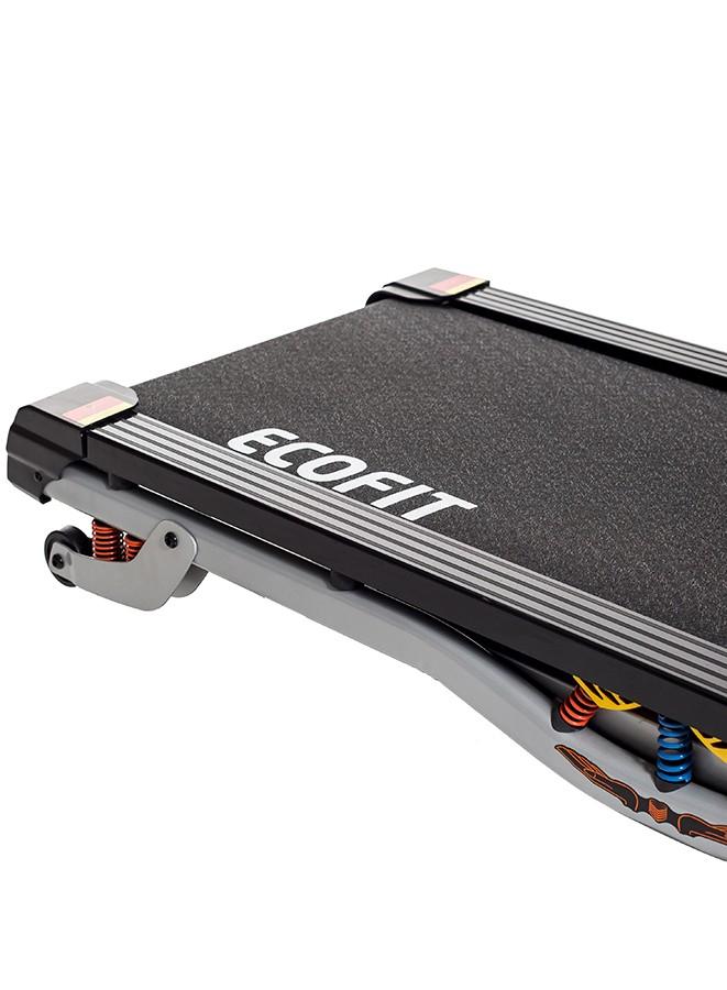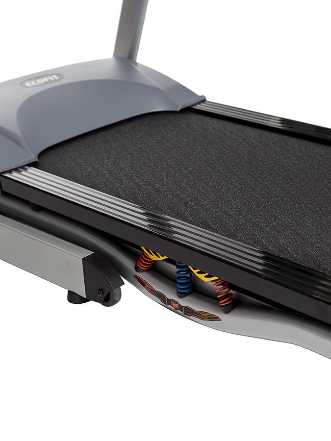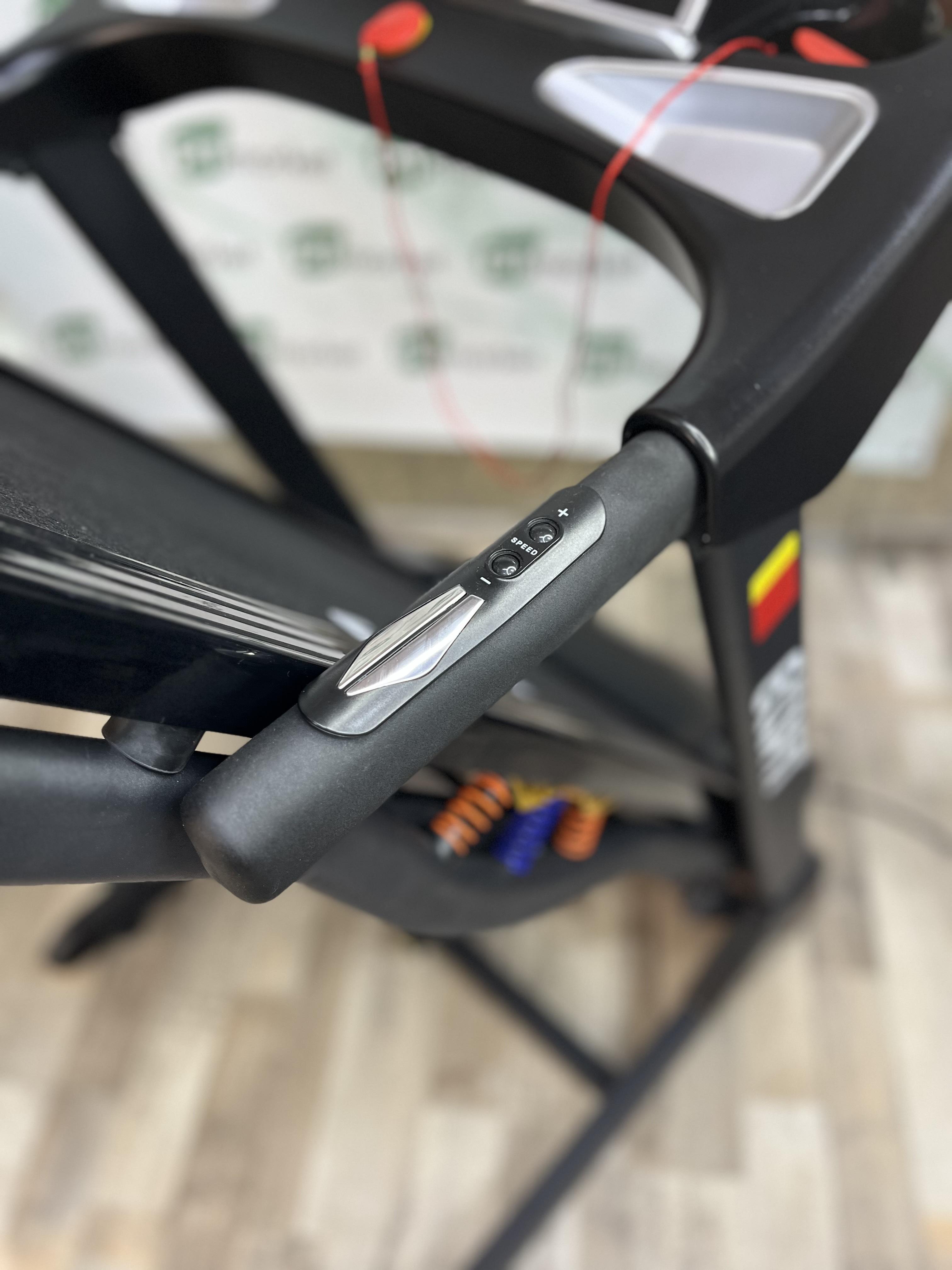 Потужний та довговічний двигун E-MB9 i потужністю 2 к.с., розрахований на тривалу роботу, розрахований на тривалу роботу та здатний витримувати навіть найінтенсивніші щоденні тренування рік за роком. Широка бігова поверхня розміром 125 на 47 см ідеально підходить для вашого улюбленого стилю вправ, будь то ходьба, біг підтюпцем або біг; а повністю залізна рама, зварена роботом, спроектована так, щоб імітувати реальні умови протягом багатьох кілометрів використання. Ви можете бути впевнені, що комфорт ніколи не буде проблемою, тому що дека підтримується 10 компресійними амортизаторами, які забезпечують безпечну та чуйну амортизацію для колін, спини та суглобів.