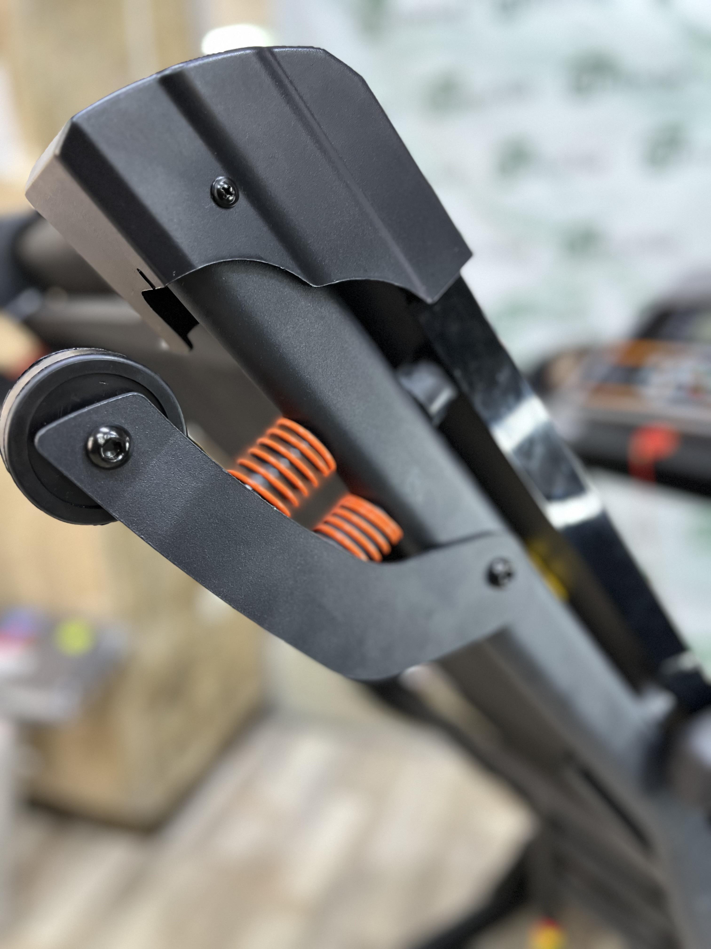 Зусилля припиняється під час закінчення тренування. Проста у підйомі та легкому опусканні, технологія EZfold у E-MB9 використовує гідравлічний удар, що допомагає складати та розкладати бігову доріжку. Просто підніміть платформу для компактного зберігання, і коли ви будете готові, система м'якого опускання витримає всю вагу бігової доріжки, коли вона розкладається для безпечного та зручного використання.