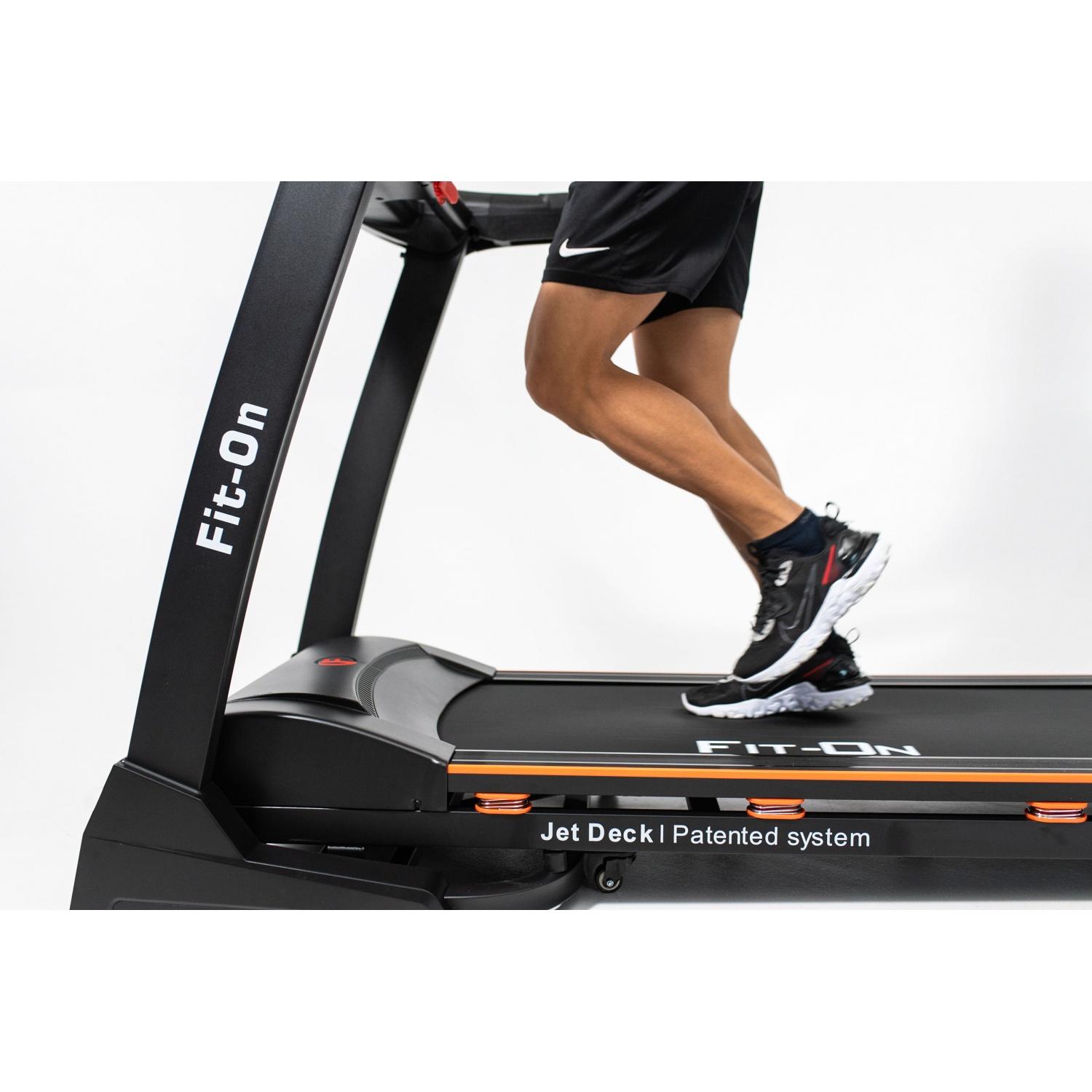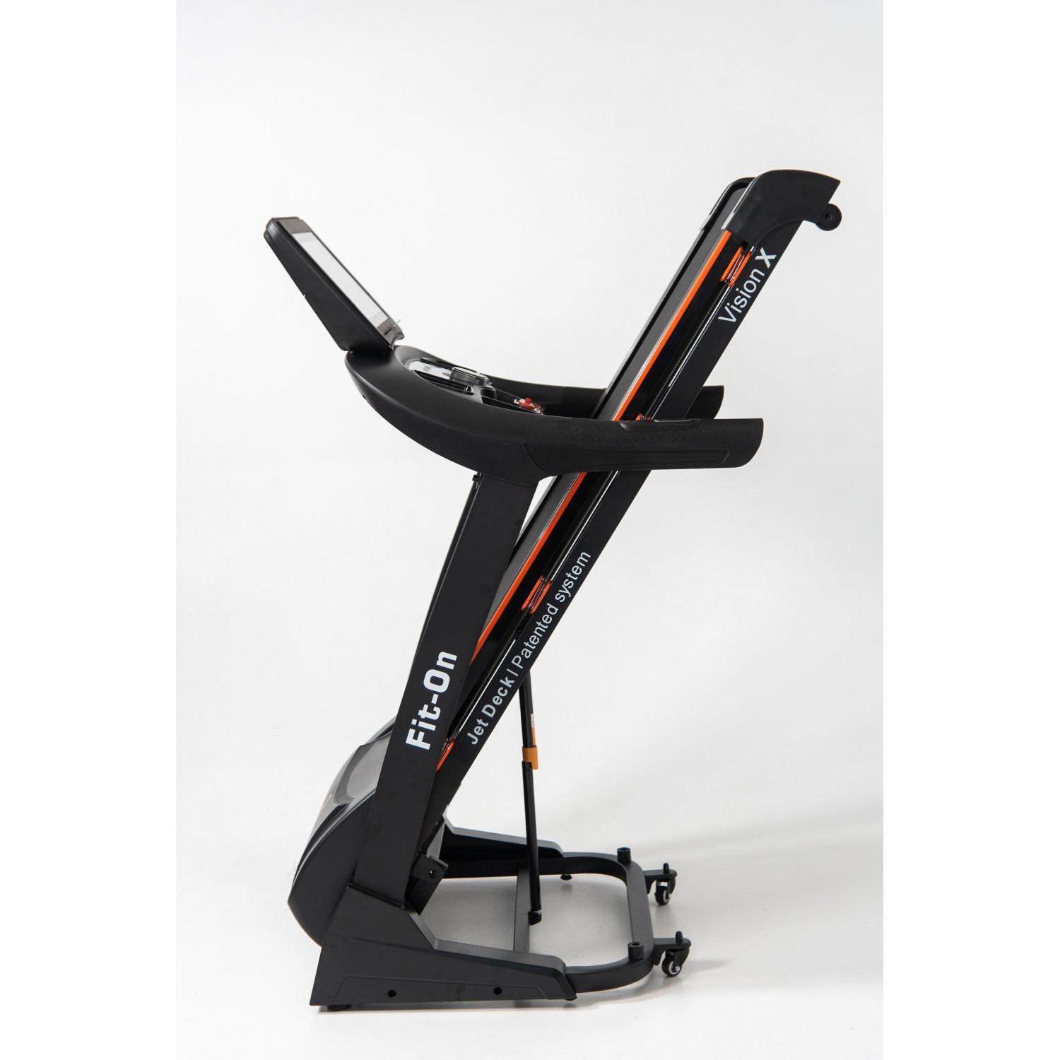 Бігова доріжка Fit-On Vision X витримує максимальне навантаження 150 кг. Наявність потужного двигуна в 3,0 кінських сил (пікова потужність – 4,0 л.с.) дає можливість набирати швидкість до 20 км на годину з підйомом полотна до 15%. Обидва параметри можна контролювати за допомогою кнопок швидкого вибору на рукоятках. Обидва параметри можна контролювати за допомогою кнопок швидкого вибору на рукоятках.