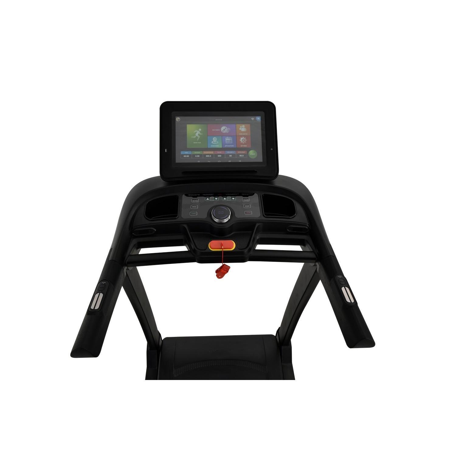 Крім того, щоб забезпечити ще більший комфорт та задоволення від користування, бігова доріжка має операційну систему ANDROID та модуль Wi-Fi для підключення до Інтернету. Під час тренінгу ми можемо дивитися фільми чи слухати музику на ньому. У комплекті також є вбудовані динаміки, входи USB та AUX для підключення телефону.
