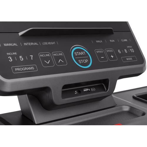 Великий і легкий для читання світлодіодний дисплей зробить користування тренажером зрозумілим для кожного. На панелі є практичні кнопки швидкого вибору програм: ручну, інтервальну, схуднення, ходьбу, біг або скелелазіння. Додаткові кнопки дозволяють швидко вибрати швидкість на рівні 6, 8 або 10 км/год і швидко вибрати кут нахилу стрічки на рівні 3, 5 або 7%. XT850 від Gymtek має 12 вбудованих програм тренувань і, крім того, функцію Body Fat, яка вимірює кількість жиру у вашому тілі.