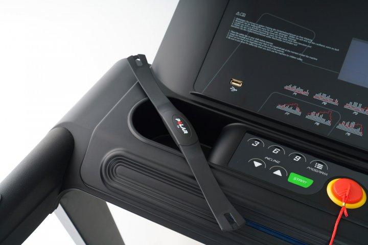 З біговою доріжкою постачається телеметричний пояс, що дозволяє відстежувати пульс під час тренування. Це чудовий помічник для людей, які лише починають тренуватися у так званій зоні частоти пульсу. Пояс підключається до пристрою Bluetooth, результат вимірювання видно на дисплеї. Сенсорні датчики, що розташовані на ручках, працюють аналогічно. Щоб виміряти пульс, утримуйте руки на датчиках щонайменше 5 секунд, результат відобразиться на дисплеї.