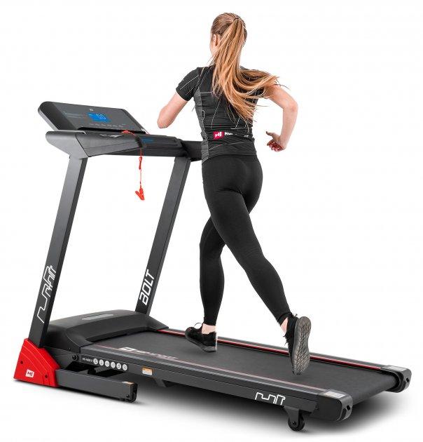 Якщо ви бажаєте швидко закінчити роботу бігової доріжки, просто вийміть так званий ключ безпеки. Бігова доріжка зупиниться, а результати вимірів обнуляться. Крім того, Bolt має режим сну - якщо ви не використовуєте бігову доріжку протягом 10 хвилин, вона перейде в режим сну. Щоб відновити роботу, натисніть будь-яку кнопку.