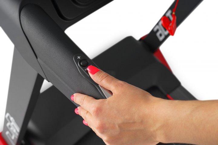 Бігова доріжка має автоматичне регулювання нахилу стрічки до 15 градусів. Кнопка знаходиться на панелі приладів. Це дозволить вам підібрати інтенсивність тренування відповідно до ваших можливостей та відчути себе так, ніби ви біжіть у гору.