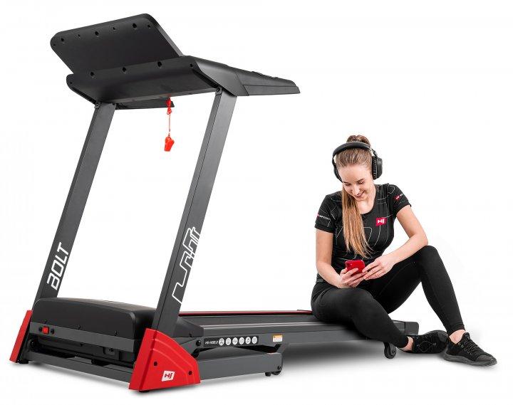 Безкоштовний мобільний додаток FitShow, сумісний з електричною біговою доріжкою Bolt, гарантує різноманітні тренування. Програма також дозволяє зберігати свій прогрес. За ходом тренування можна спостерігати на екрані планшета, смартфона чи телевізора. Ви можете заряджати планшет та телефон під час тренування завдяки USB-входу на дисплеї.