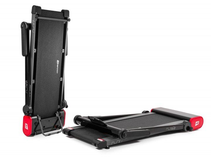 Закінчили тренування? Ви можете прибрати бігову доріжку з очей геть миттєво. Достатньо скласти її і встановити вертикально чи горизонтально, а завдяки транспортувальним роликам доріжку можна легко перемістити у будь-яке місце. У складеному та горизонтальному положенні бігова доріжка має висоту всього 22 см – це дозволяє розмістити її під ліжком.