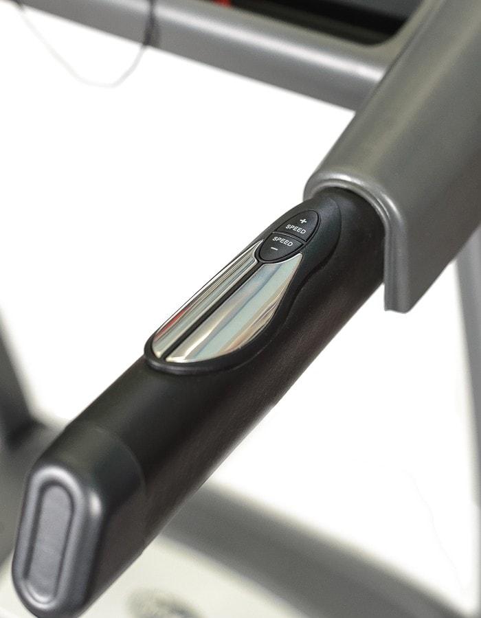 • Для удобства изменения параметров во время тренировки предусмотрены дополнительные кнопки мгновенного выбора скорости и наклона на рукоятках и консоли.