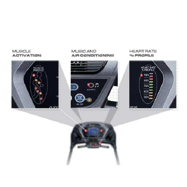 - унікальна функція контролю частоти серцебиття Heart Rate, виконана у вигляді графічної колірної шкали, яка, виходячи з віку, показує співвідношення поточного пульсу до максимально допустимого пульсу. індикатор загоряється бурштиновим кольором при навантаженні в 50-60%, зеленим 65% -80%, а червоним при 85% і вище, це дозволяє проводити тренування з максимальною ефективністю;