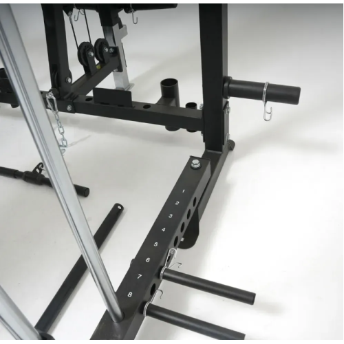 ✅ Регульовані страхувальні упори з UHMW-покриттям (17 рівнів висоти) гарантують безпеку навіть при тренуваннях з великими вагами.