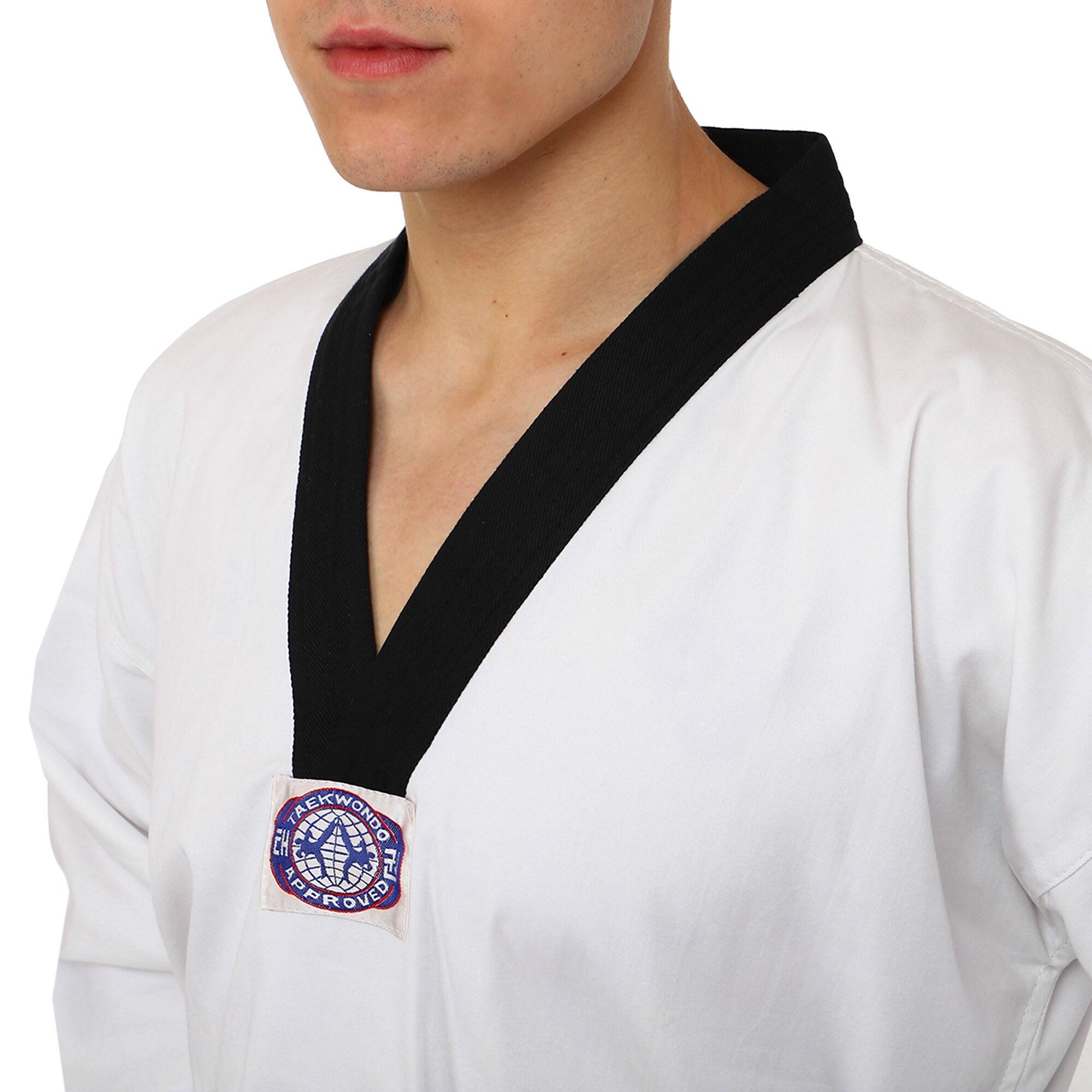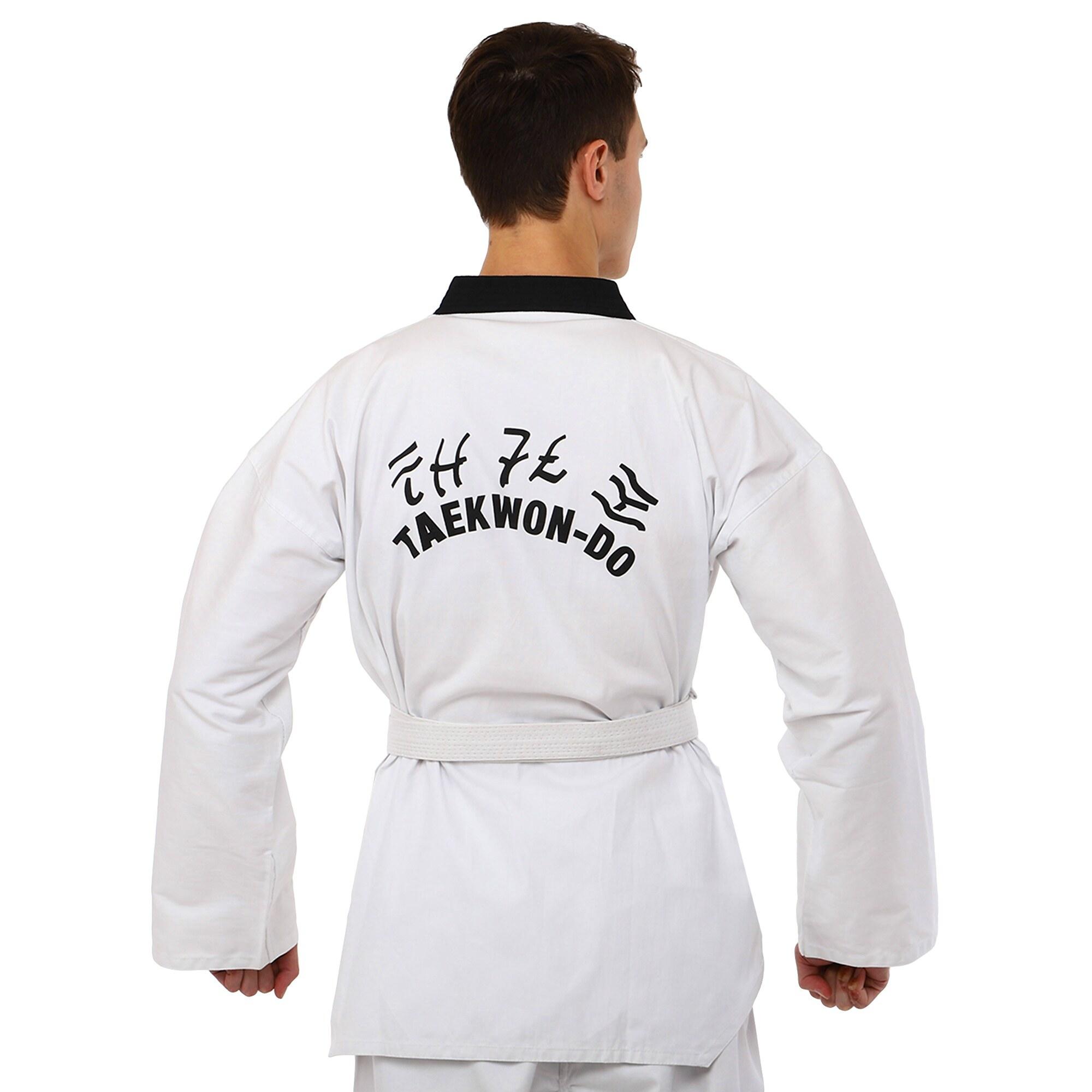 - Колір куртки для тхеквондо: білий з додаванням чорного кольору.