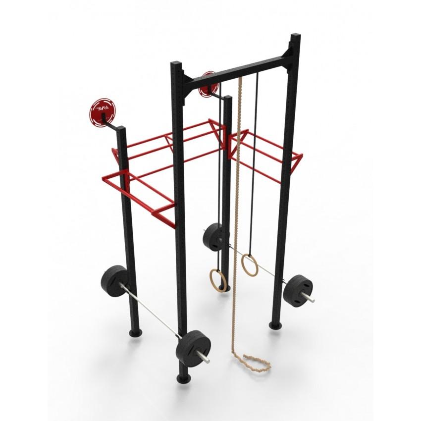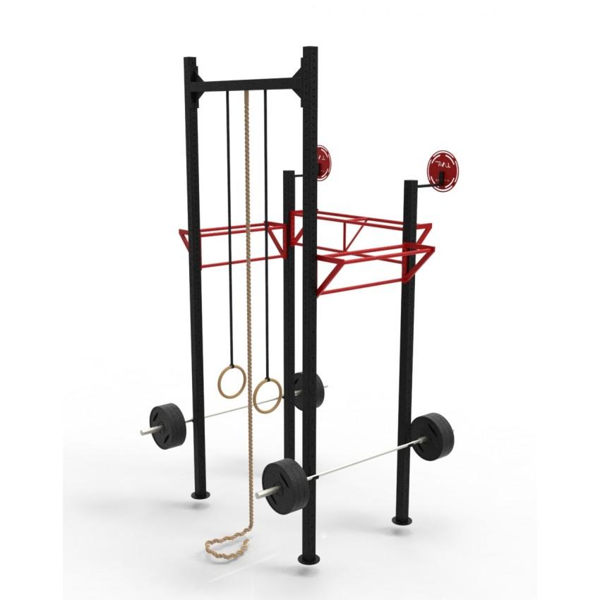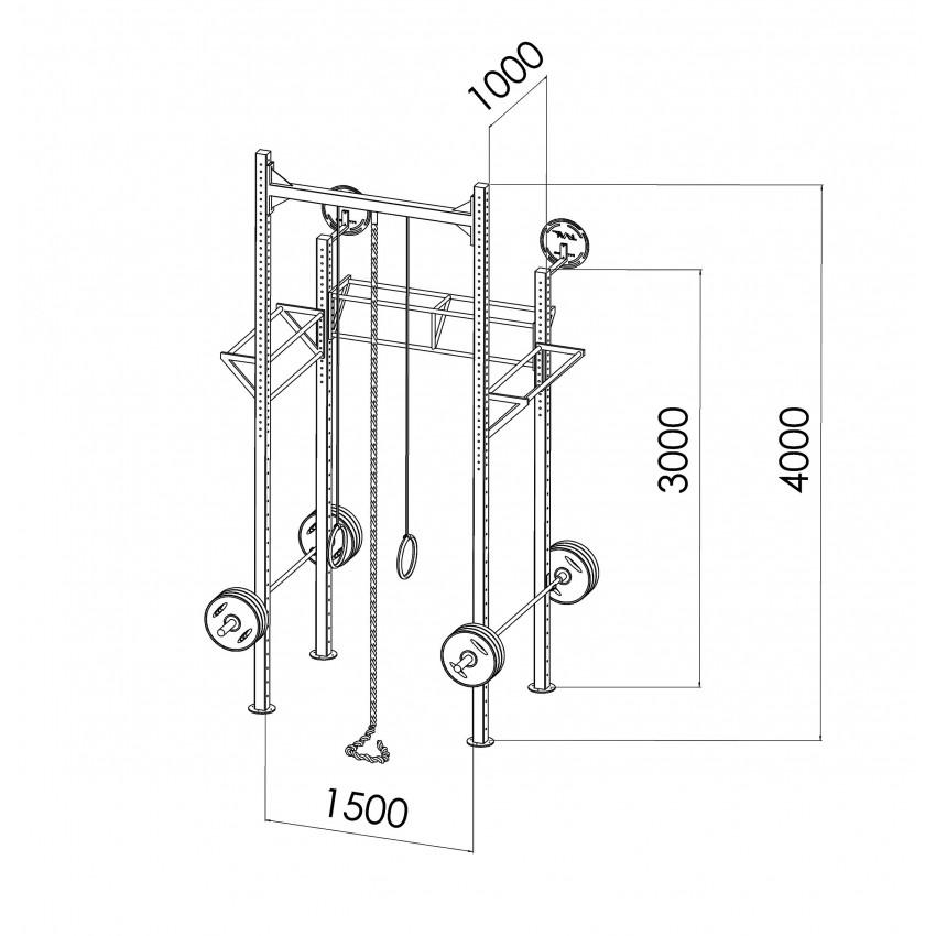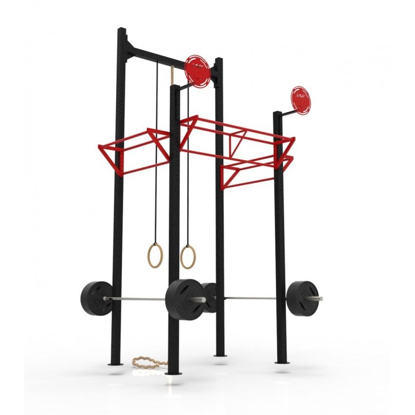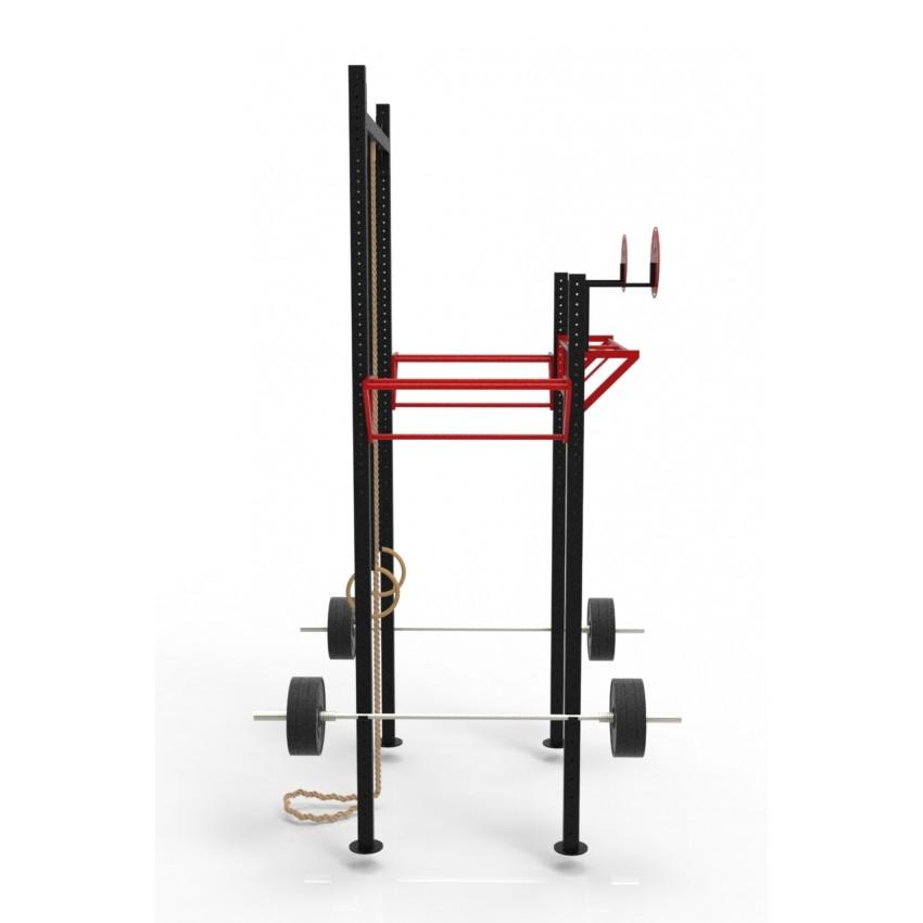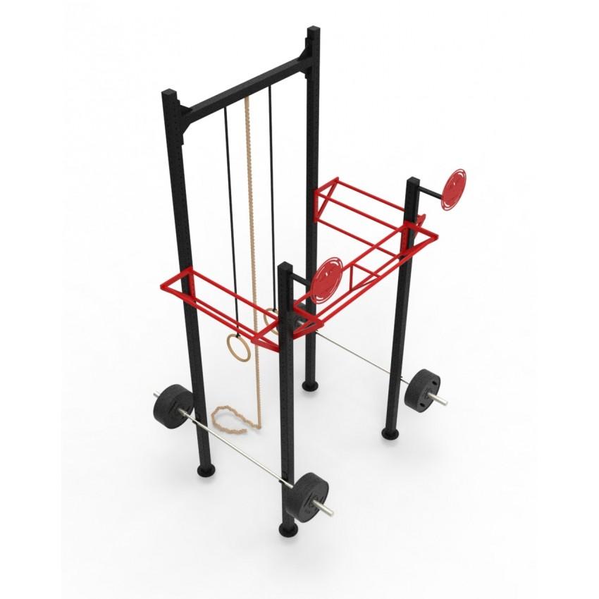 - Два місця для штанги: Кросфіт станція оснащена чотирма гачками для грифів, що дозволяє одночасно тренуватися двом спортсменам зі штангами.