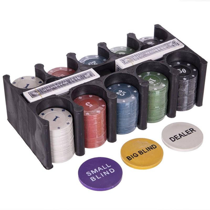 Цей набір покеру поставляється з усім необхідним для гри. Він включає комплект пластикових фішок, які мають різний номінал, позначений як цифрами, так і кольором. Комплект також включає дві стандартні колоди карт, а також фішки великого блайнда, малого блайнда і дилера. Крім цього в наборі є сукно покеру - своєрідна данина традиціям і відмінний спосіб захистити фішки і карти від подряпин, тим самим продовживши термін їх експлуатації. Для зберігання раціонального зберігання фішок передбачено пластиковий контейнер. Всі елементи комплекту укладені в коробку з тонкого листового металу – компактну та легку.