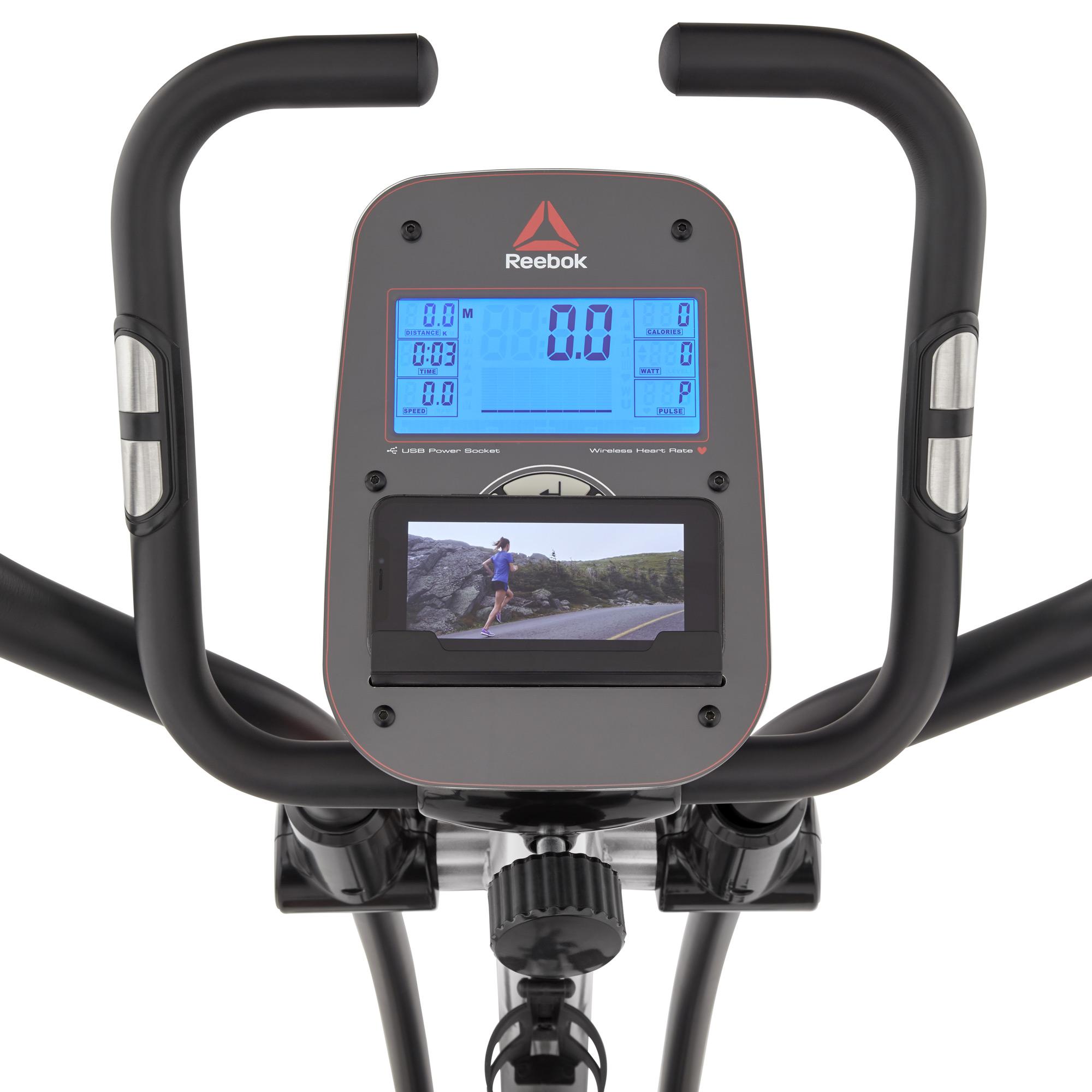 Орбітрек Reebok A6.0 Cross Trainer RVAR-10611SL, створений для вимогливих домашніх кардіотренувань, повністю обладнаний для підвищення вашої витривалості за мінімальної дії на суглоби. В основі A6.0 лежить міцний та надійний маховик вагою 9 кг, що забезпечує плавне обертання. 32 рівня електронного опору та встановлені програми ідеально підібрані як для тривалих, так і для коротких інтервальних тренувань із високим навантаженням.