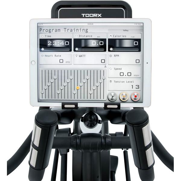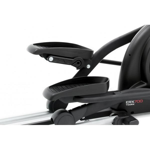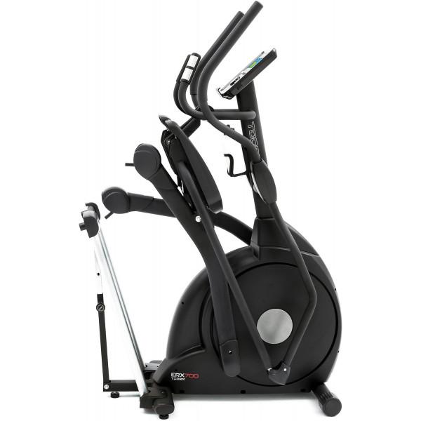 Орбітрек Toorx Elliptical ERX 700 (ERX-700) із преміальної лінійки Chrono Line італійського виробника Garlando S.p.A. призначений для інтенсивного кардіотренування в домашніх умовах. Тренажер має 32 рівні навантаження, що регулюються за допомогою сучасного комп'ютера. 18-кілограмовий маховик створює чудову плавність ходу, знижуючи навантаження на суглоби та мінімізуючи ризик отримання травми в процесі занять. Орбітрек розрахований на вагу до 130 кг, а довжина кроку 46 см припаде до вподоби навіть найвибагливішим користувачам. Вбудований приймач для бездротового датчика вимірювання пульсу буде доречним під час тренування по одній із чотирьох пульсозалежних програм. Консоль тренажера має тримач для смартфона / планшета і підтримує Bluetooth для інтеграції з популярними додатками iConsole+ Training, Kinomap та Zwift, які перетворять монотонне тренування в захоплюючий процес.