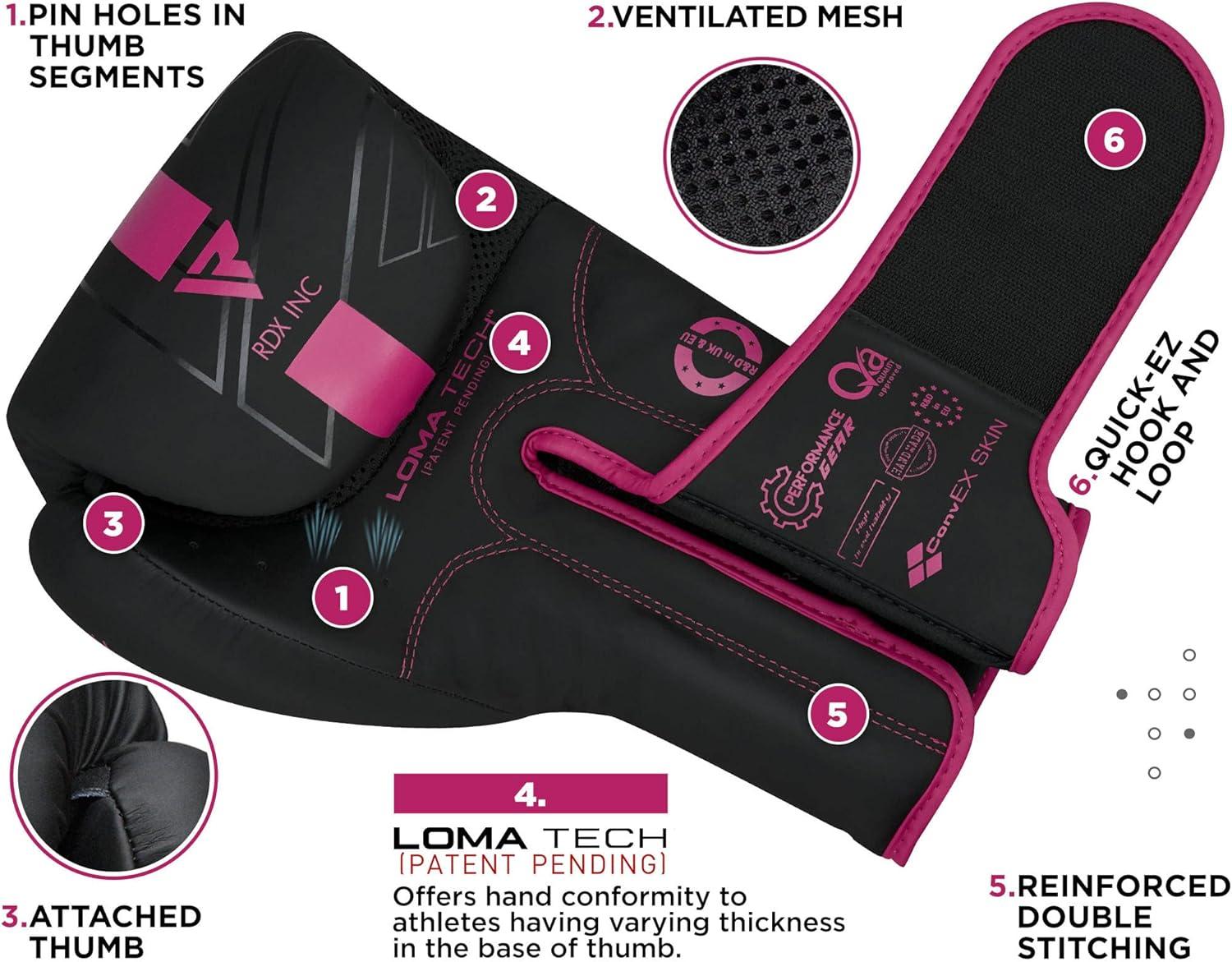 Побалуйте себе захоплюючим тренуванням у боксерських рукавичках RDX. Створені з використанням опуклої шкіри Maya Hide, ці боксерські рукавички зручні та, перш за все, забезпечують надзвичайний захист ваших зап’ясть. Max-ShockTM Equilibrium FOAM рівномірно розподіляє силу по всій рукавичці та робить її ідеальним амортизатором. Технологія Quadro Dome3 використовується, щоб забезпечити достатній захист удару, тоді як Calibrated Impact Diffusion SHEET і SpongeX PADDING допомагають підтримувати положення зап’ястя. Технологія Loma Tech була впроваджена вперше для покращення конструкції. Розумно розміщена підкладка QD 1 забезпечує вентиляцію та бойовий досвід без поту. Ремінець Quick-EZ на липучці забезпечує оптимальне вирівнювання зап’ястка з додатковою перевагою зручної посадки.