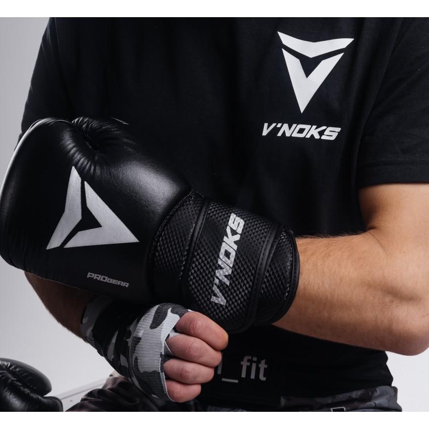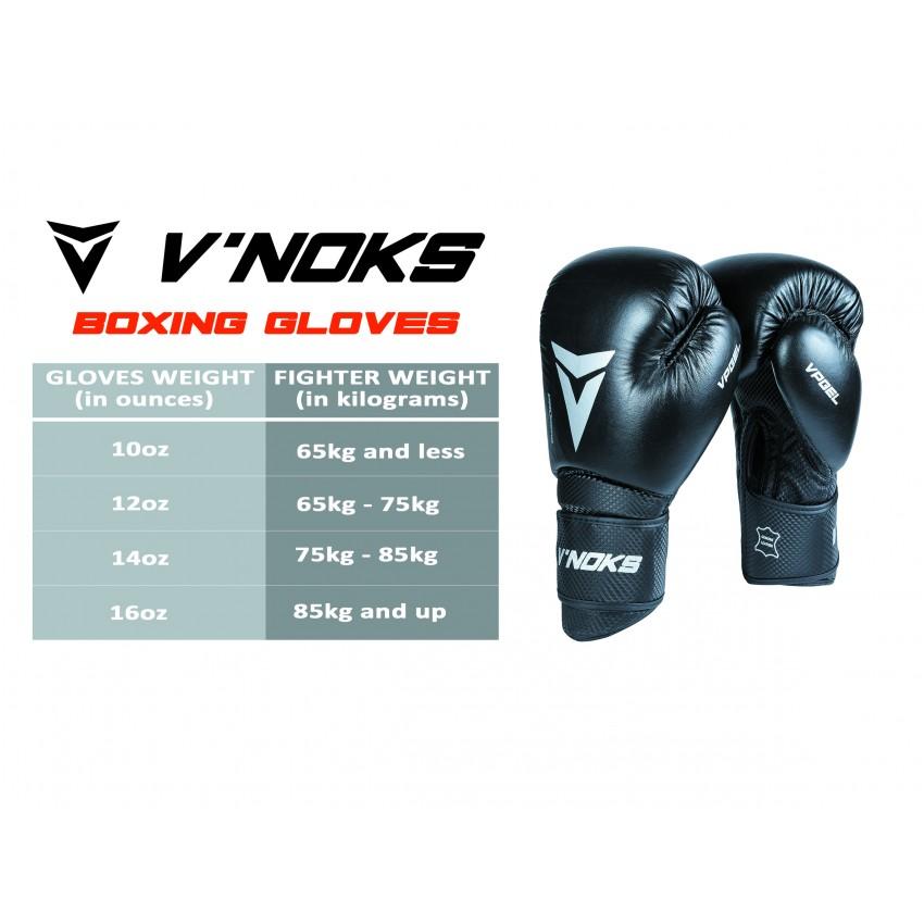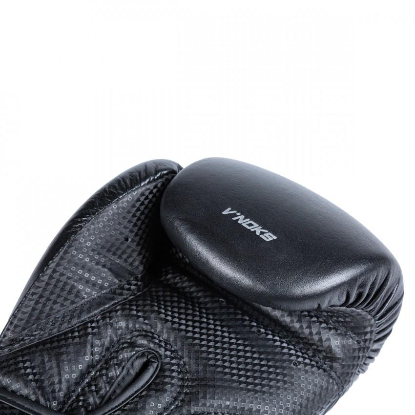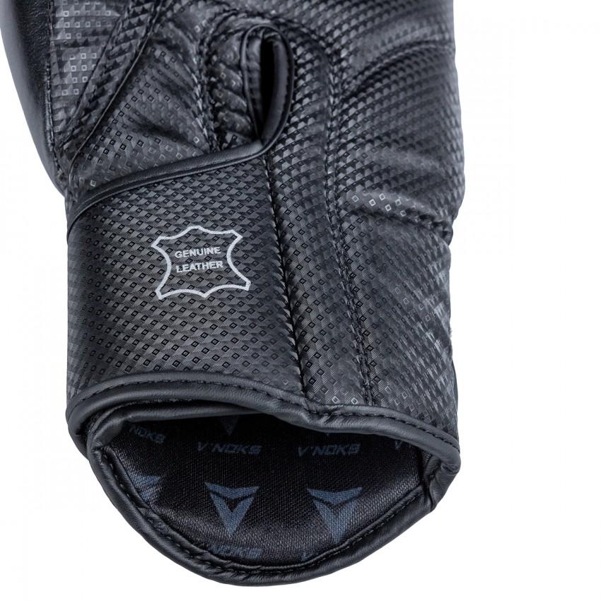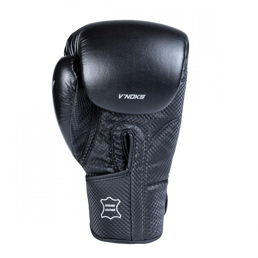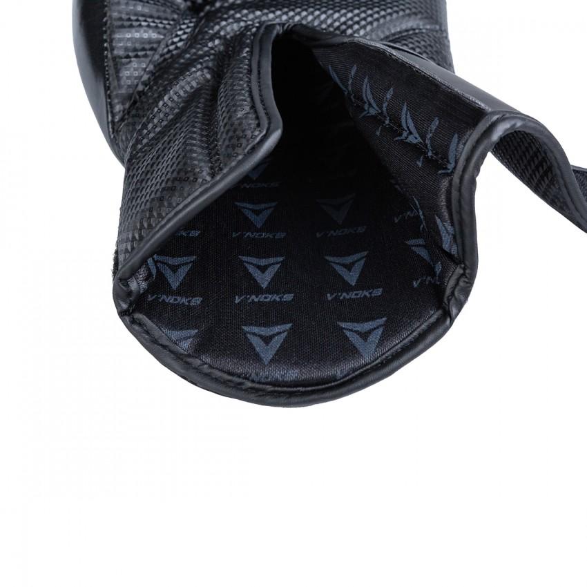 Модель виконана в лаконічному чорному кольорі, зап`ястя і долоня із синтетичної шкіри з тисненням під карбон, що надає додаткову міцність матеріалу. Рукавичка відзначена логотипом і написом V`Noks на тильній стороні і на зап'ясті.