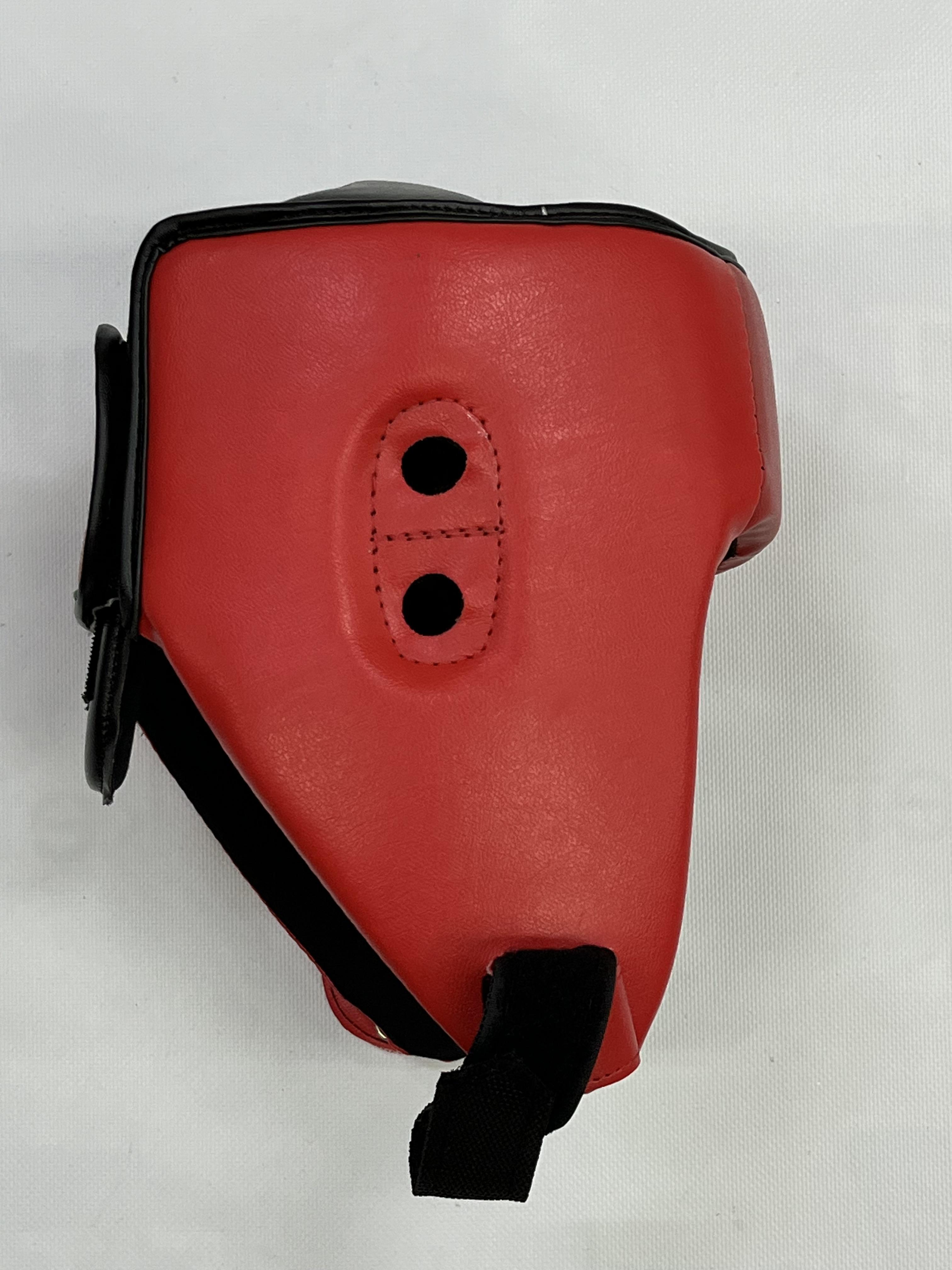 Шолом у верхній частині повністю цільний, з хрестоподібною шкіряною сполукою, з боку потилиці є липучка для максимального підгону шолома під голову спортсмена. Попереду шолом застібається під підборіддям за допомогою липучки, що дозволяє спортсмену самостійно одягати та знімати шолом.