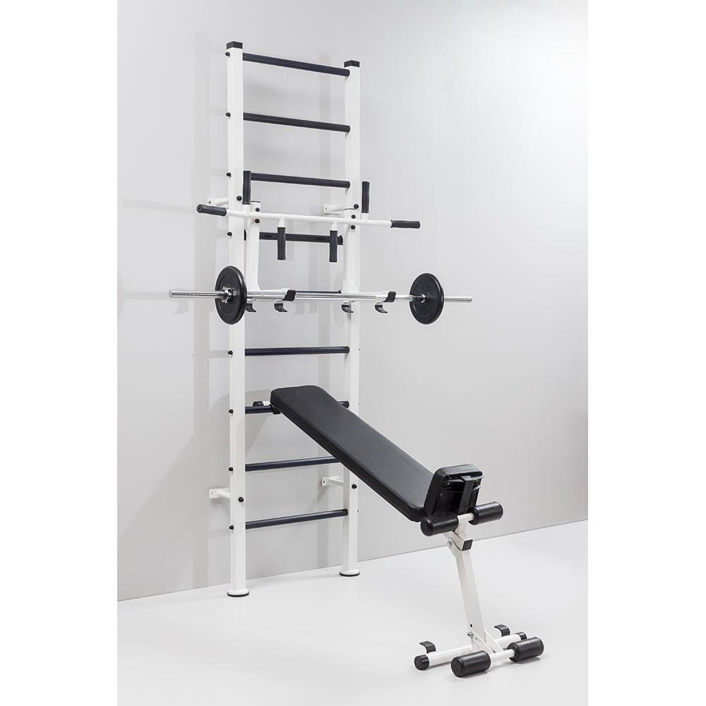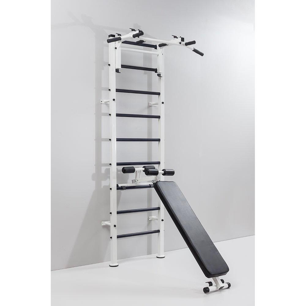 Шведська стінка Ладас Атлант є флагманською моделлю, вона комплектується посиленими стійками розміром 50х50х2250 мм при товщині металу 2 мм і здатна витримувати людину, чия вага досягає 150 кг! Іншими словами, ви без проблем зможете підтягуватися з обтяженням і виконувати ривки, не турбуючись, що тренажер підведе, і не витримає навантаження. Окрім надійності виробник подбав про комфорт та функціональність. Другий ряд валиків на лаві захистить щиколотки від тиску металу, а додаткове сидіння дасть точку опори під час виконання жиму під кутом, недоступного в недорогих аналогах. Турник переміщається і включає класичний, вузький та паралельний хват. Бруси повністю відкріплюються, вони мають м'які підлокітники і спинку, незамінні елементи при виконанні вправ на прес. Лава посилена профілями, що дозволяє їй витримати вашу вагу в сумі з вагою штанги. Тільки в шведській стінці Атлант є додаткові валики, що дозволяють виконувати вправи на прес з більшою амплітудою, і тим самим підвищувати ефективність обраної вправи. Спортивний комплекс стане незамінним для людей, які не уявляють життя без спорту. Він розрахований на жорстку експлуатацію 24 години на добу, сім днів на тиждень, саме тому ви можете побачити його у спортивних клубах та фітнес центрах вашого міста. Для встановлення потрібно годину вільного часу та 1 квадратний метр площі. В результаті ви отримаєте домашній тренувальний комплекс, здатний опрацювати кожну групу м'язів вашого тіла. Вся продукція Ладас виробляється в Україні із справжньої сталі. Експорт активно ведеться до країн євросоюзу, що вже говорить про якість та надійність виробу.