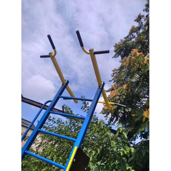 Вулична спортивна стінка Тренажер. Спортивний комплекс для вулиці, дачі, присадибної ділянки. Вуличний тренажер для тренування, розтягування, підтягування на турніку та брусах. Вік користувача – необмежений. Користь для здоров'я – 100%.
