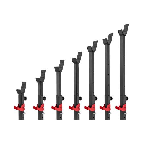Система регулювання висоти дозволить вам налаштувати стійки відповідно до ваших поточних вимог до тренувань. У вашому розпорядженні семирівневий діапазон позицій - від 87 до 145см. Вилки стійок HS-1005L мають спеціальні гумові прокладки, які зменшують шум і поглинають удар при опусканні штанги.
