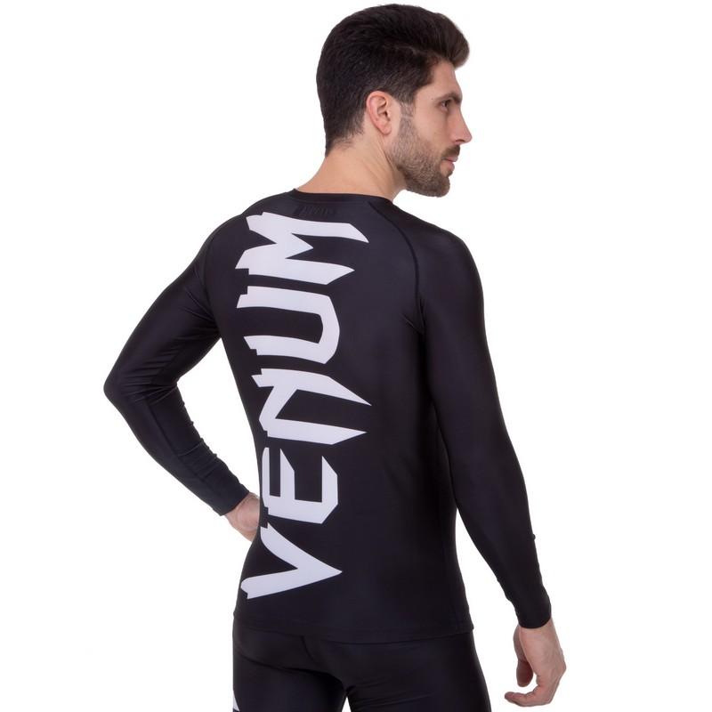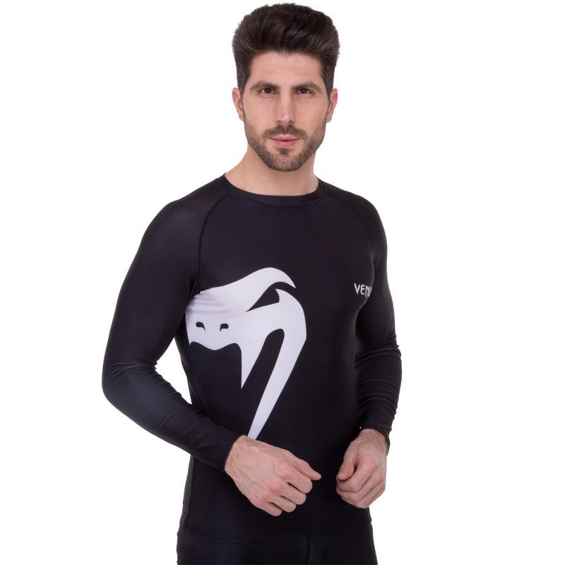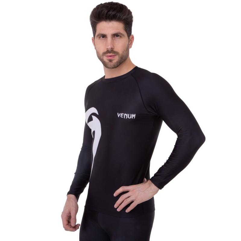 Рашгард є компресійною футболкою із закритою горловиною і довгими рукавами. У пошитті даного тренувального одягу використані еластан та поліестер. Перша тканина відрізняється підвищеним рівнем еластичності, легкістю. Для поліестеру характерна міцність, зносостійкість, стійкість до деформацій. Поєднання цих матеріалів забезпечує чудові експлуатаційні характеристики виробу. Рашгард щільно облягає тіло бійця, завдяки чому вдається протягом тривалого часу зберігати тепло. Крім того, таке екіпірування легко пропускає повітря і швидко висихає. На відміну від звичайних футболок із бавовни рашгард венум майже не рветься, тому підходить для щоденних активних тренувань зі змішаних єдиноборств та інших видів спорту. Рашгард дуже легкий і майже не відчувається на тілі.