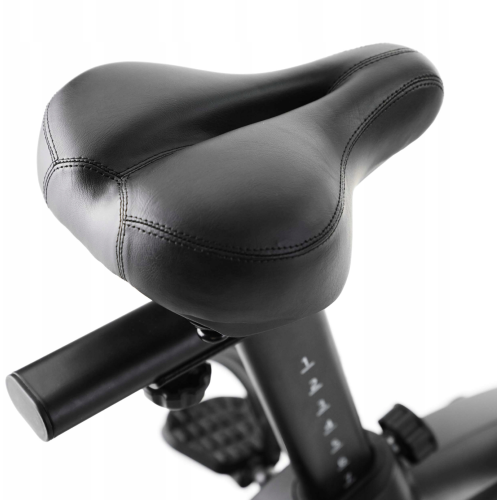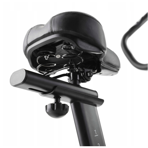 Сидіння велотренажера TX-550MB HYPER ретельно спроектоване для надання максимального комфорту. Ергономічна форма та амортизаційне покриття забезпечують стабільне сидіння, а система амортизації ефективно поглинає удари. Вентильоване покриття допомагає запобігати перегріву та підтримує свіжість. Регулювання висоти сидіння на 10 рівнях дозволяє налаштувати велотренажер для кожного користувача, що критично важливо для правильної постави під час тренувань. Фіксуючий гвинт забезпечує швидке регулювання без додаткових інструментів. Горизонтальне регулювання забезпечує ідеальне відчуття комфорту та контролю.