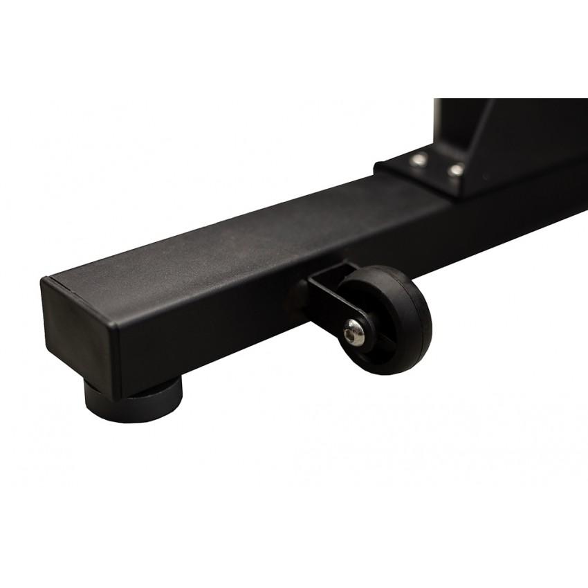 - Для зручного переміщення тренажера передбачені спеціальні коліщатка.
